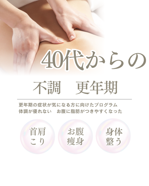 40代以降の方となるとお腹まわりや背中、二の腕などが多いのと更年期の時期となるため